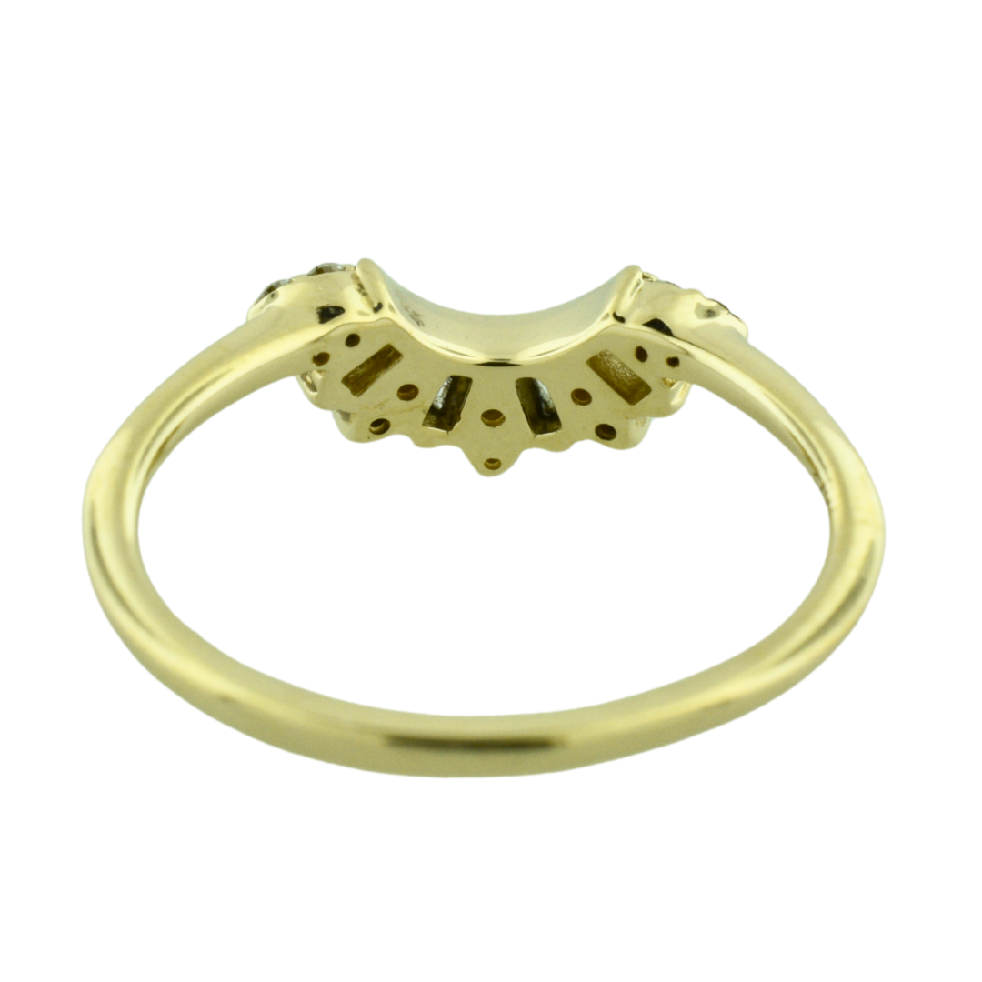 Add sparkle and shape with this estate 14K yellow gold contour band, featuring 1/5 carat total weight of dazzling round and baguette diamonds.