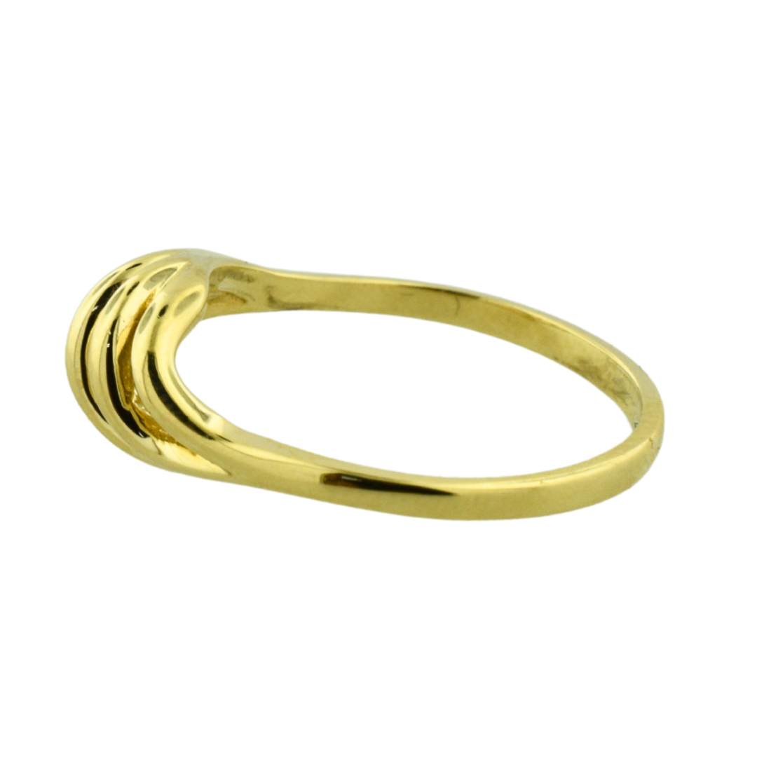 Size 6. This elegant estate ring features a flowing openwork freeform design crafted in 10K yellow gold. Its sculptural shape adds a modern, artistic touch—perfect for those who love unique, airy styles.