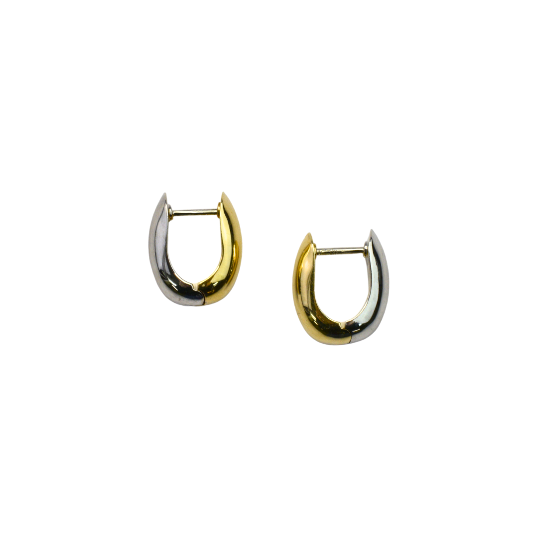 These estate hoops showcase a bold, rounded silhouette in polished 14K yellow and white gold. The two-tone design adds modern contrast, while the hinged construction ensures a secure, comfortable fit. A versatile look for any occasion.