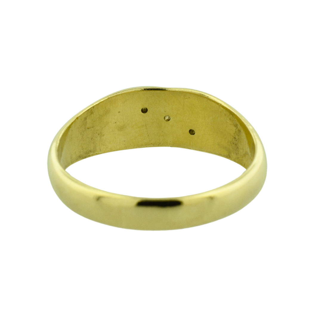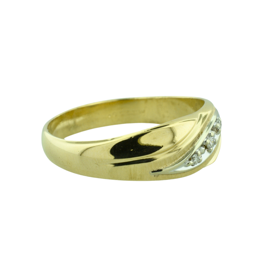 Size 11.5.A refined blend of craftsmanship and style, this estate 14K two-tone gold band features three sparkling diamonds set in a sleek wave design.