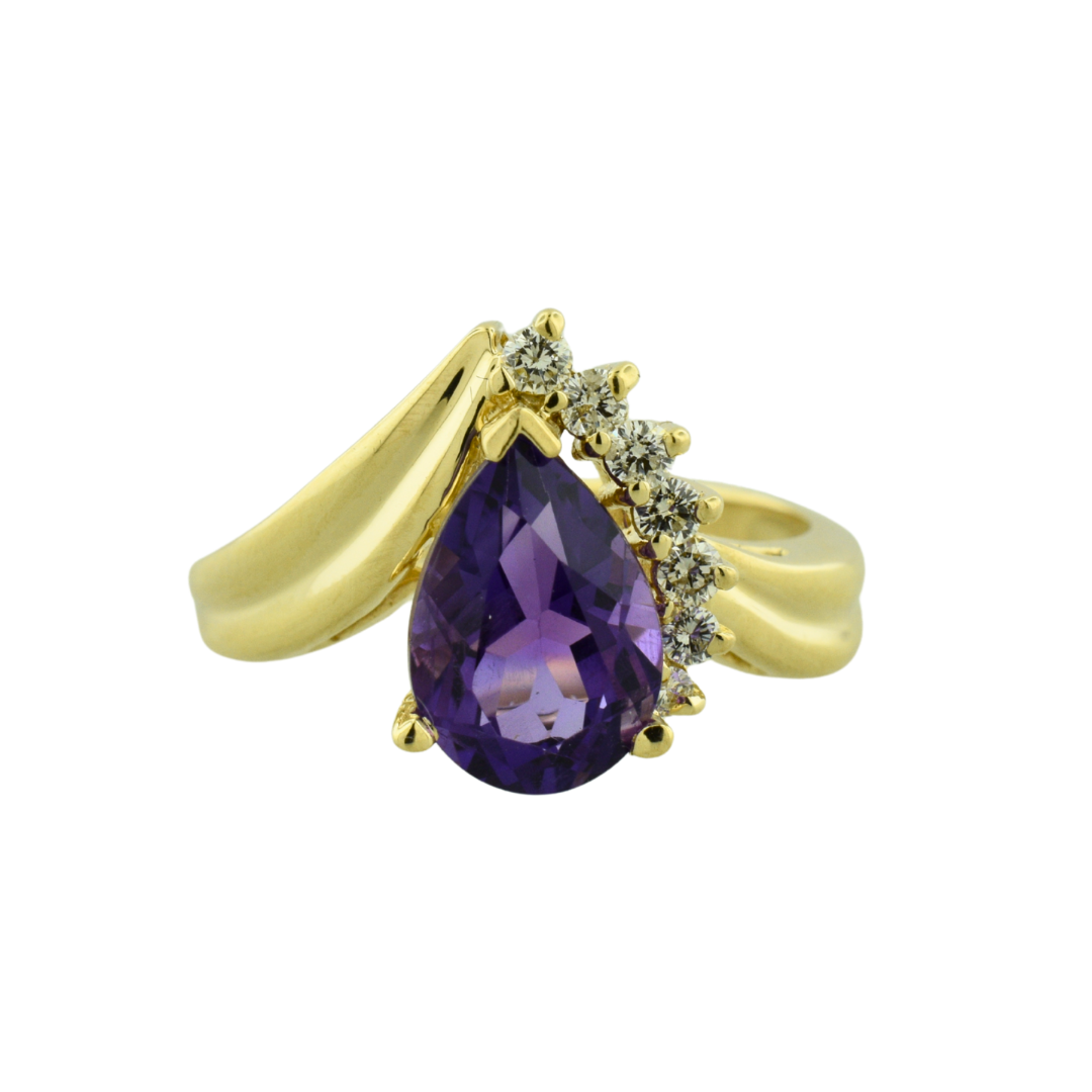 Estate 14K Purple Pear & Diamond Ring