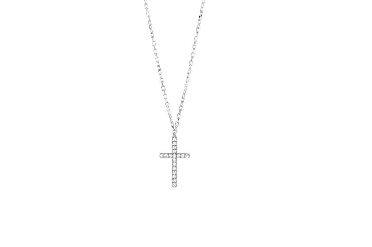 Suspended from a fine white gold chain, this necklace sits beautifully at the collarbone, making it ideal for both daily wear and meaningful gifting. Its classic elegance and spiritual symbolism make it a thoughtful addition to any jewelry collection.
