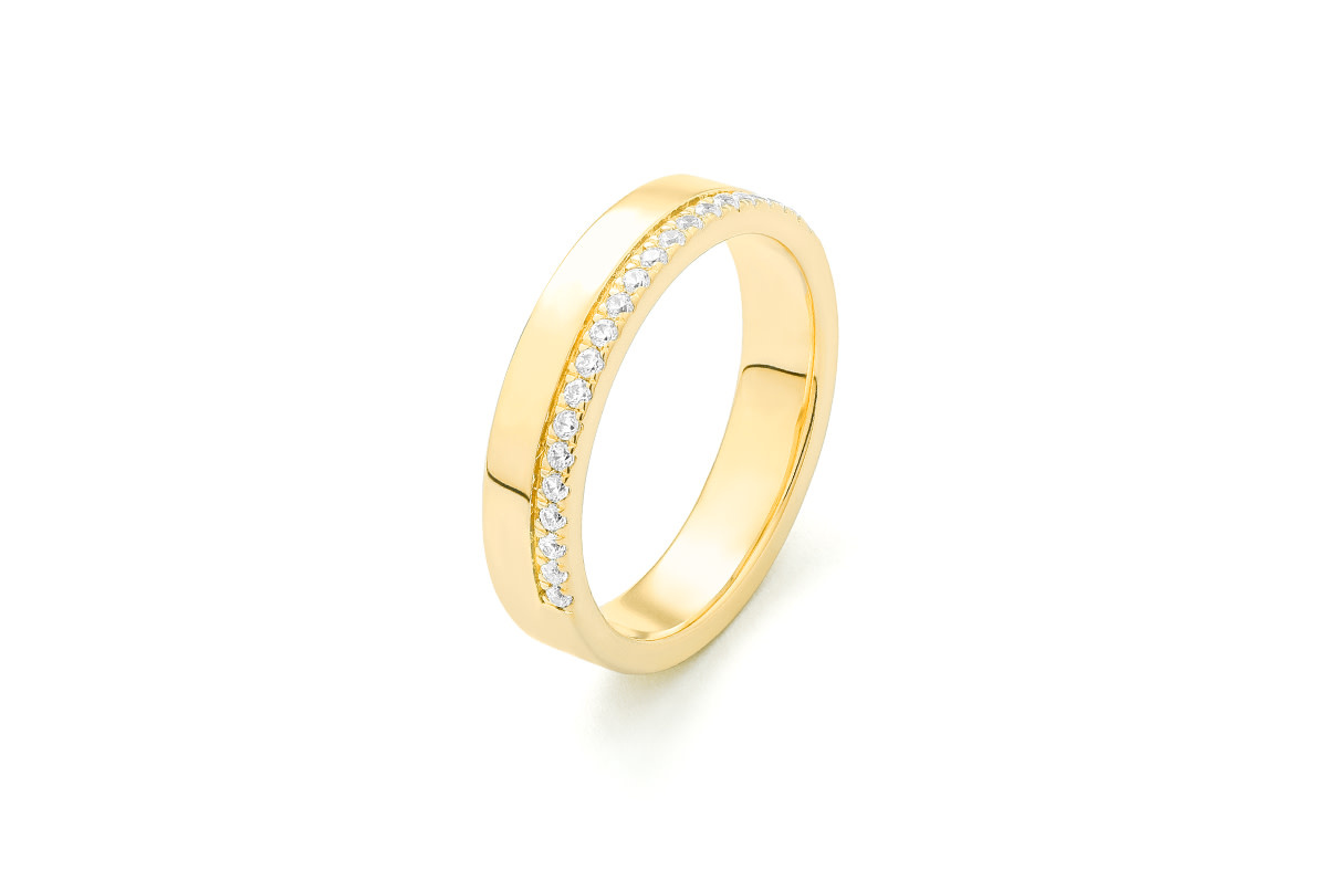 Its minimalist silhouette offers just the right touch of shimmer, making it a versatile piece for daily wear, stacking with other rings, or serving as a contemporary wedding or anniversary band. Understated yet elegant, this ring pairs timeless craftsmanship with modern style.