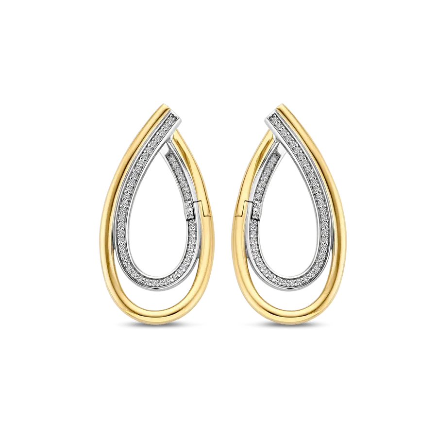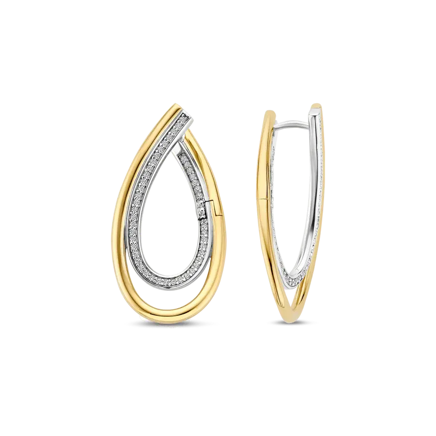 The distinctive closure curves elegantly across the ear, adding depth and a subtle dynamic effect to the design. Thanks to their open, organic silhouette, the earrings feel light and graceful while maintaining a strong presence. These 18ct gold vermeil zirconia earrings are perfect worn solo as a stylish accent or combined with other silver or gold-plated jewellery.