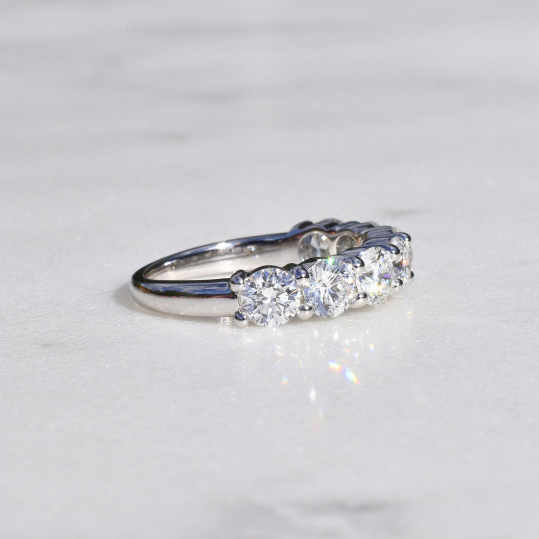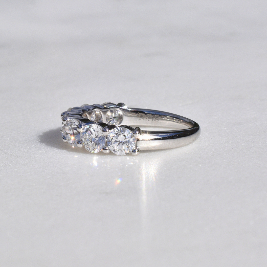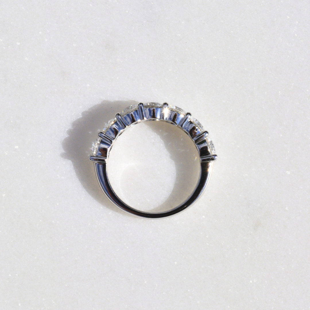 Create an accountThis elegant 7-stone diamond band is crafted in 14K white gold and set with seven lab-grown round brilliant diamonds totaling 2.20 carats. Each diamond is G–H color and VS clarity, offering exceptional brilliance and a clean, bright look. The shared-prong setting maximizes light return while maintaining a secure, low-profile fit. Perfect as a wedding band, anniversary ring, or sparkling statement stacker, this band combines timeless design with the ethical beauty of lab-grown diamonds. A refined choice for anyone who values classic style and conscious luxury.